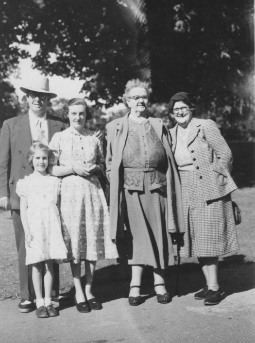 Jean Henderson (née Brown), with her daughter (Sandra), her mother-in-law (Annie), and Archie and Kate Cullen