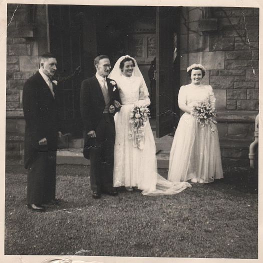 Bride and Groom, with Best Man (Eric Maxwell) and Bridesmade (Rita Martin)