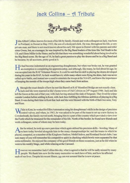 Photocopy of Tribute read at service