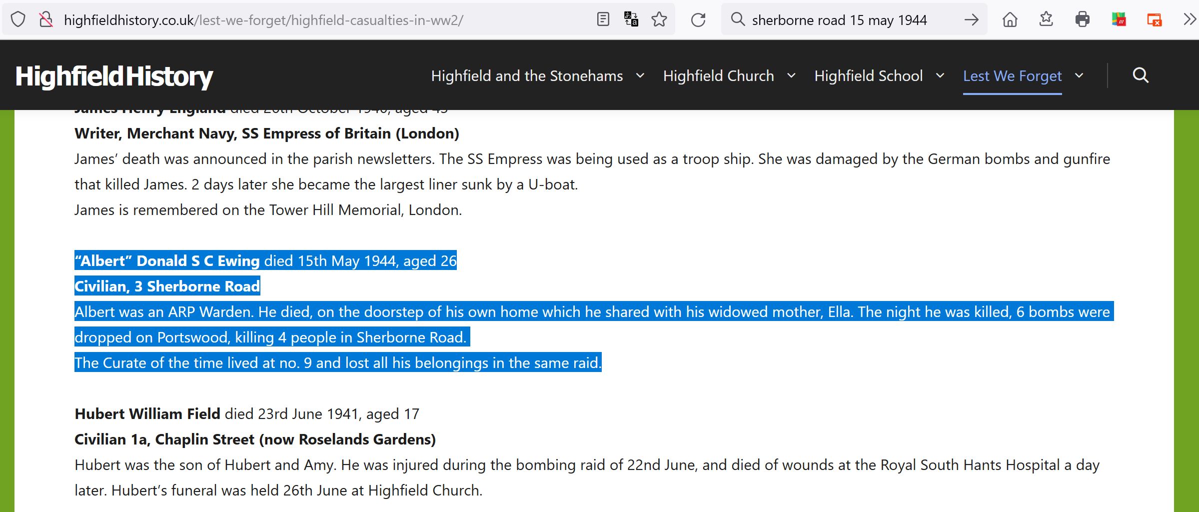 Highfield History website